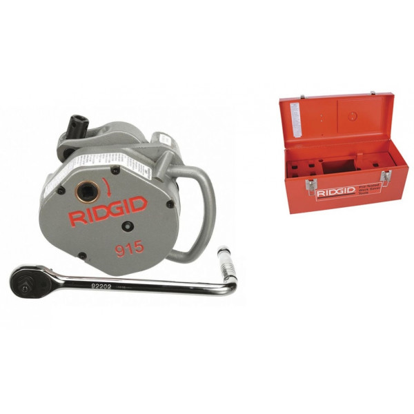 Nová válcovačka obvodových drážek RIDGID model 915 je manuální válcovačka pro fixní aplikace v terénu. Model 915 vyžaduje jen 9 cm volného prostoru pro pohyb okolo trubky a minimálně 7 cm trubky určené pro drážkování. Se správnou sadou válců dokáže drážkovat trubky od 11/4 "do 12", což je největší rozsah v této třídě! Zabudovaná rukojeť modelu 915 umožňuje jednoduchou přepravu nebo připoutání drážkovačky řetězem proti krádeži. Model 915 je pro servisní týmy naprosto nezbytný pomocník.