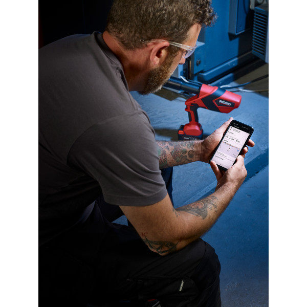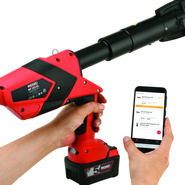 RP 352-XL má funkci Press-CHECK! Senzor tlaku a přímo monitoruje každý jeden lisovací cyklus a varuje v případě selhání. Kromě toho RP 352-XL poskytuje uživateli informace o používání prostřednictvím integrované OLED obrazovky nebo mobilního zařízení, které dokáže být připojeno k RP 352-XL přes Bluetooth a bezplatnou aplikaci RIDGID.